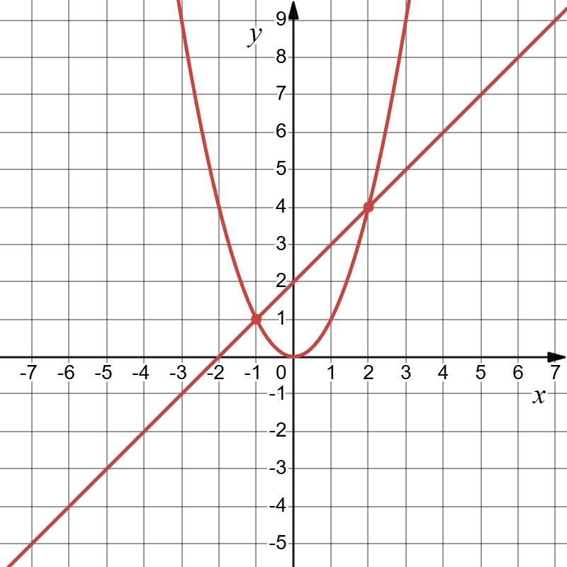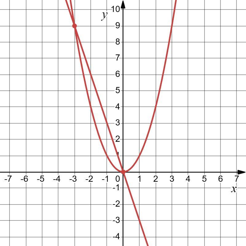Точки перетину: (−2; −8), (−7; 47).