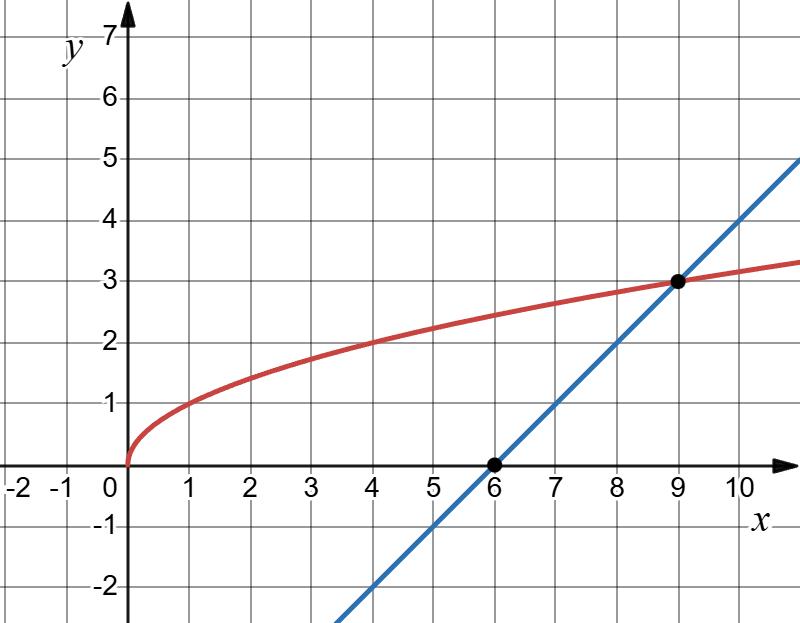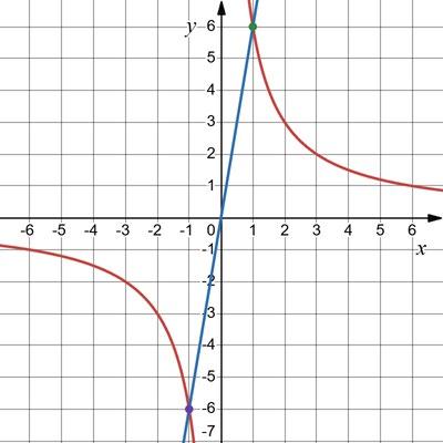 Точки перетину: (6;1), (−1; −6).