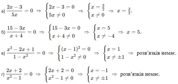 г) a = 0 і a = 0,5 → дроби 1 ���� , 1 ����−0,5 не мають змісту.