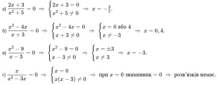 г) x = 0 і x = -3 → дроби 1 ���� , 1 ����+3 не мають змісту.