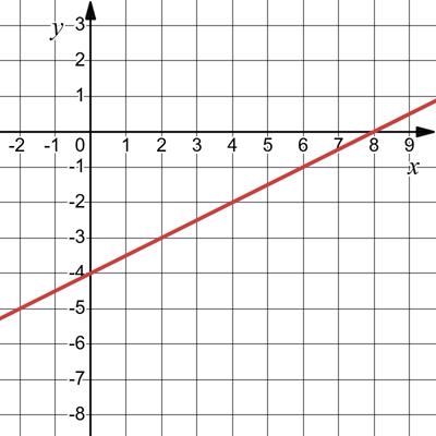 y = 1 2 x – 4. З віссю Ох: y = 0; 0 = 1 2 x – 4; x = 8. (8; 0) З віссю Оу: х = 0 y = 1 2 ⋅ 0 – 4 = –4. (0; –4).