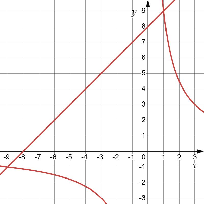 2) y = –3, x = –5; x = 5.
