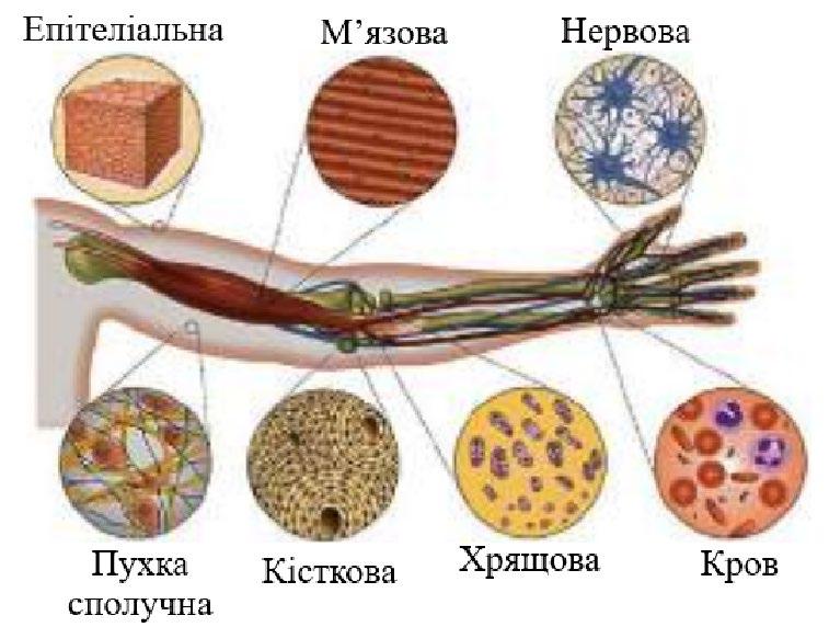 різних тканин (м’язової, нервової, епітеліальної, сполучної), а отже, не