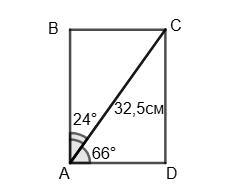 ΔABC: AB = AC cos 24°; AB = 32,5 · 0,9135 = 29,6 (см).
