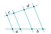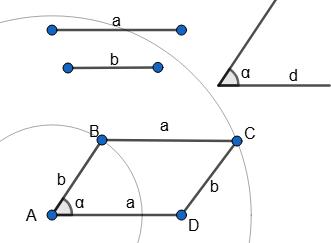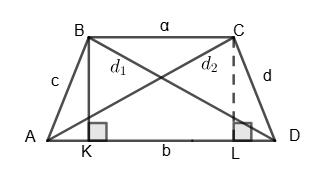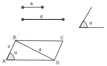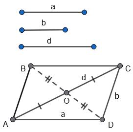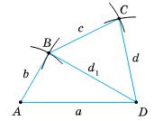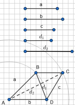 Побудувати: трапецію ABCD так, щоб AD = a, BC = b, AC = d1, BD = d2.