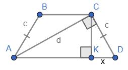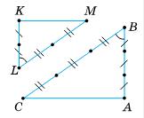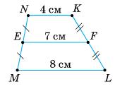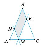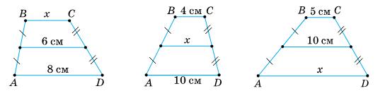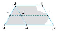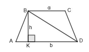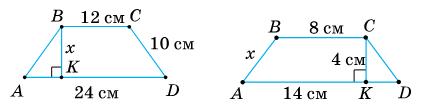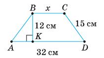 ABCD — трапеція; BC ∥ AD; BC = x; BK = 3x; AD = 6x; Sтр = BC + AD 2 · BK.