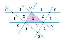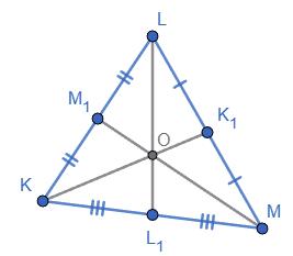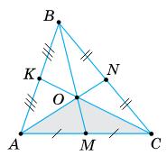 трикутника, який ділить висоту у відношенні 2 ∶ 1, починаючи від вершини. Це означає, що радіус вписаного кола ���� становить одну третину висоти ℎ трикутника.