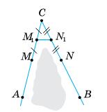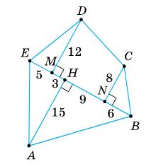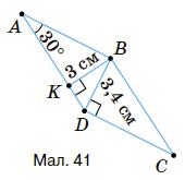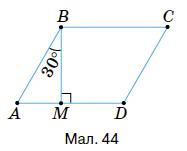 BC2 = 1935,94; BC = 43,9 см; AM = BC. ΔBAM — прямокутний; cos ∠BAM = 38,5 43,9 ; ∠BAM = 61°.