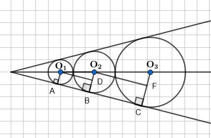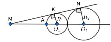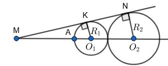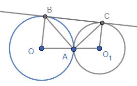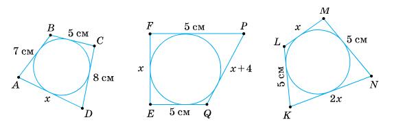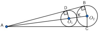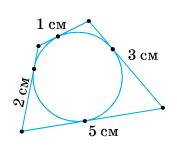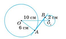 Відповідь: AC = 26,4 см; AB = BC = 33 см. 1321. Два кола радіусами 3 см і 12 см дотикаються зовнішньо. Знайдіть кут між спільними зовнішніми дотичними цих кіл.