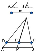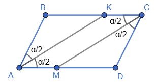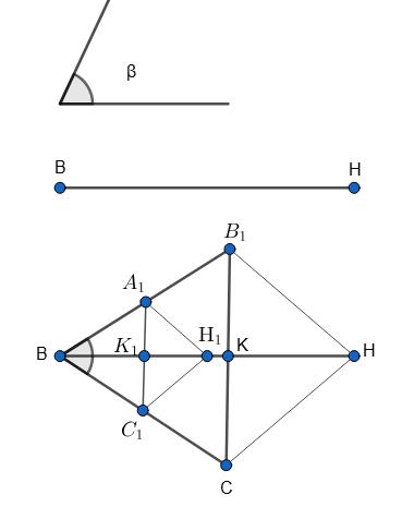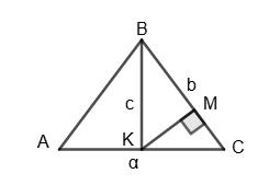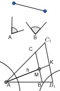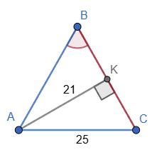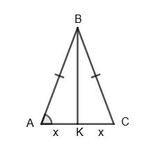 AB + AC = 59,4 см; AK = C = x; AB = 59,4 − 2x; ∠ABK = 23°42′.