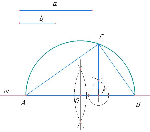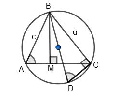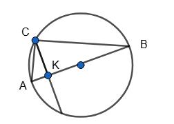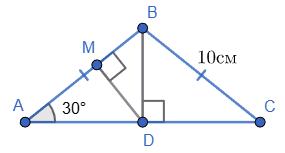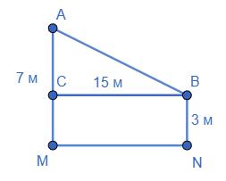 AB ⟂ AC; AB = 38,5 см; AC = 21,3 см; AM — діаметр.