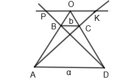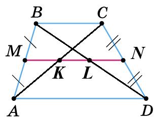 В трапеції ABCD AD = a, BC = b. Проведемо через