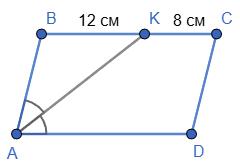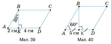 Нехай ABCD — паралелограм. AB = CD = 10 см; ∠A = 30°;