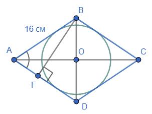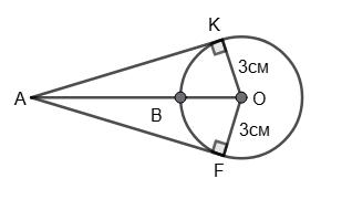 BO = 3 см; AB = 2 см; AK і AF — дотичні до