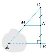 АС + ВС = 5 + 4,1 = 9,1 см, а АВ = 9,6 см.