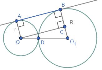 O2B = R1 = 12 см; O1D = R2 = 3 см; O2B ⟂ AB; O1D ⟂ AB.
