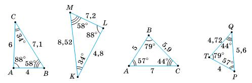 c = 29 см; a = 20 см; b = 21 см; sin ∠A = 20 29 ; cos ∠A = 1 29 .