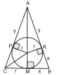 3. Обчислення радіуса вписаного кола: За умовою, висота, проведена до основи (а в рівносторонньому