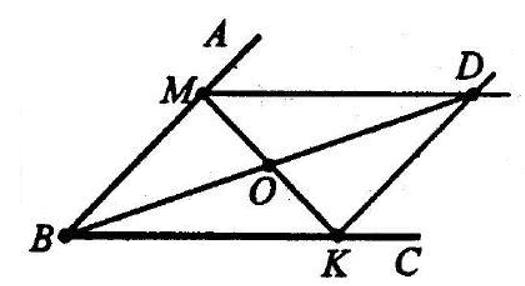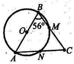 Аналогічно ∠KBO = ∠OBA = 56° : 2 = 28°.