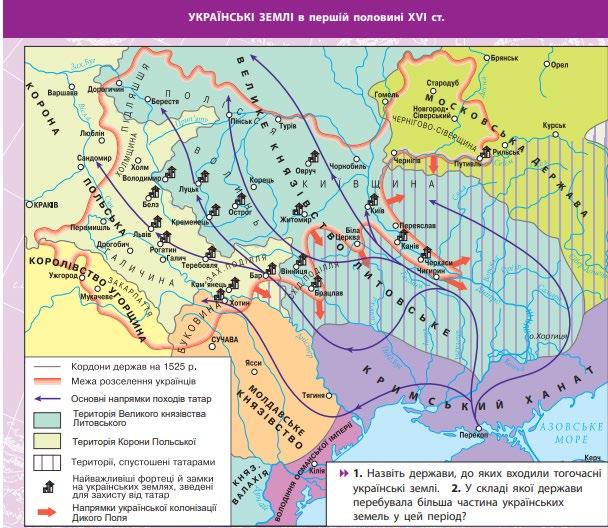 Більшість українських територій входила до складу Великого князівства Литовського та Королівства Польського, згодом – Речі Посполитої (після Люблінської унії 1569 р.).