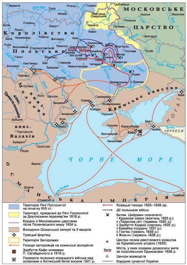 Поч. XVII ст.: Черкаси (1625), Полтава (1630), Ніжин (1625), Переяслав (1620), Козелець (1640), Біла Церква (1620-ті), Коростень (1638).