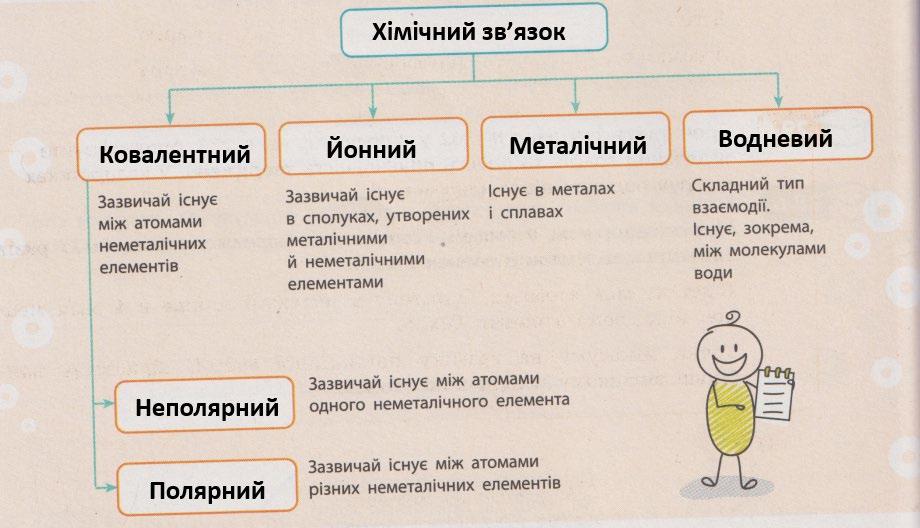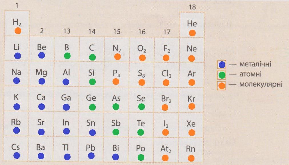 будови (атомна, молекулярна й йонна).