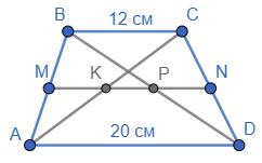 MN = 1 2 (BC + AD) = 1 2 (12 + 20) = 16 см