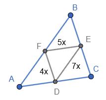 Нехай вони дорівнюють: 4x, 7x, 5x. Кожна середня лінія