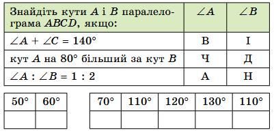 За таблицею: 70° → В, 110° → І.