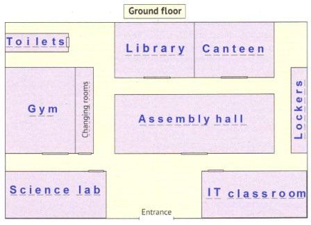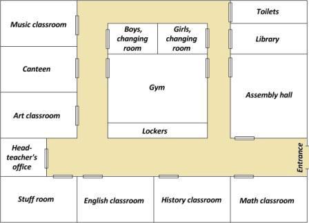 – a music room, a headteacher’s office, a staff room, a hall, a playground.