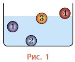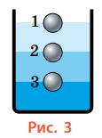 6. У посудину налили три рідини, які не змішуються, ртуть, воду й гас (рис. 3).