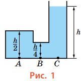 2. Тиск рідини в посудині: а) однаковий у всіх точках; б) зростає зі збільшенням глибини; в) зменшується зі збільшенням глибини; г) зростає зі зменшенням густини рідини.