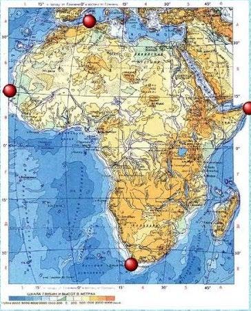 Аравійський, Індостан, Скандинавський, Аляска. Найбільші острови: Гренландія, Нова Гвінея, Борнео, Мадагаскар. Найбільші моря: Середземне море, Карибське море, Червоне море. Найбільші затоки: Мексиканська затока, Бенгальська затока
