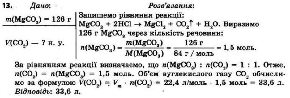 13. Чи однакові маси та об’єми (за однакових умов) мають 1,5 моль CO2 і 1,5 моль O2? Відповідь підтвердьте розрахунками.