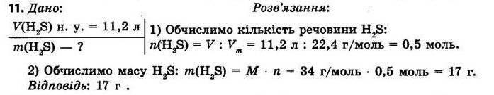 11. Обчисліть масу гідроген сульфіду H2S об’ємом 11,2 л за нормальних умов.