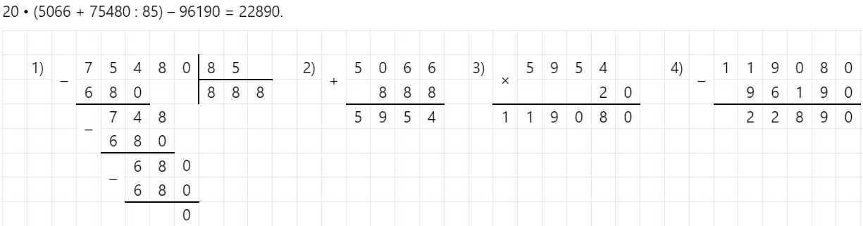 18. 54 • 63 – 8200 : 5 + 60 • 145 = 10462 1)2)3)