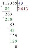 3) 2236 : 43 = 52