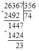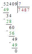 5) 28453 : 54 = 526 (ост. 49)
