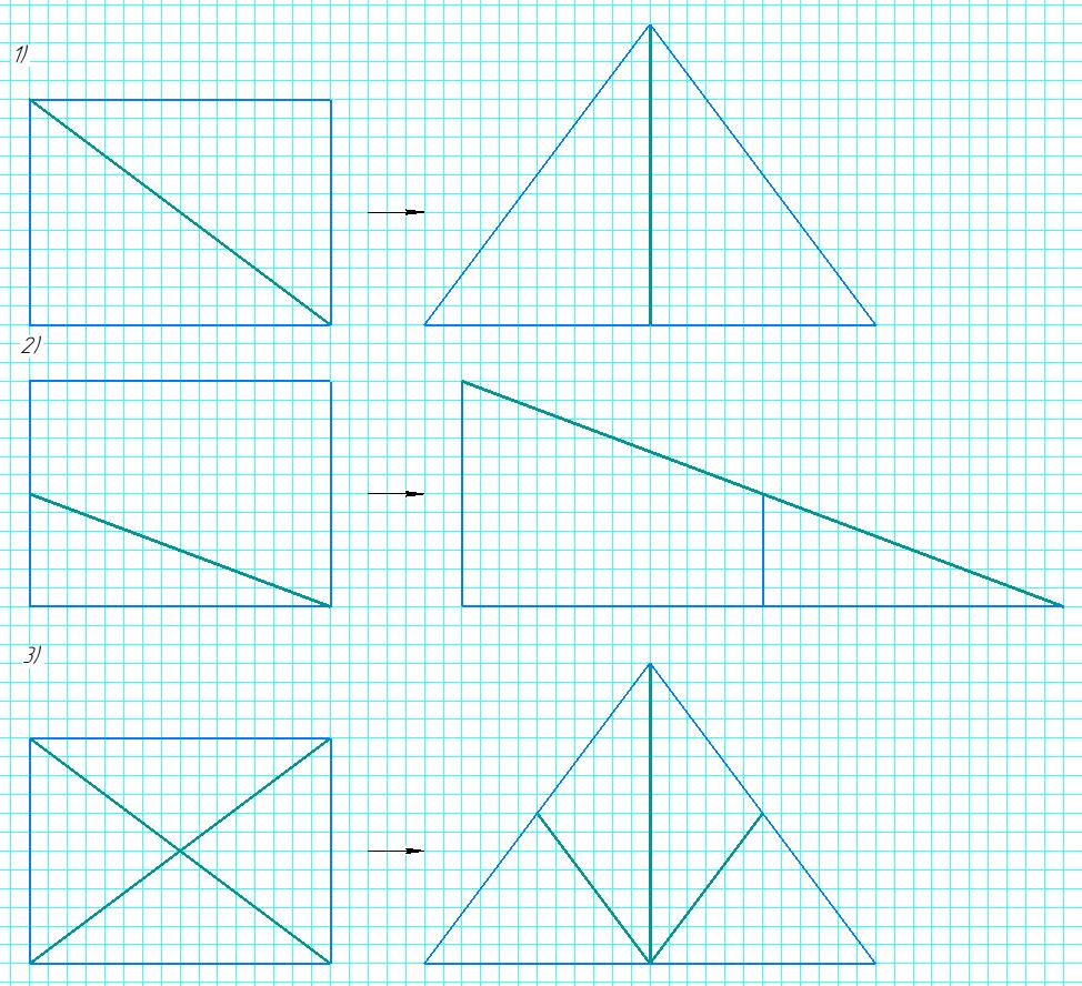 1) 2 см, 4 см і 3 см; 2) 10 см, 15 см і 12 см.