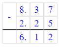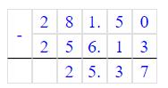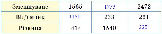 2) Зменшуване число 25, від’ємник 12, значення різниці 13.