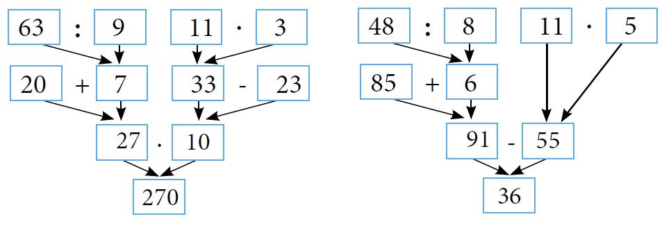 1) (44-14):3+12·3; 1) 44-14=30, 2) 30:3=10, 3) 12·3=36, 4) 10+36=46.