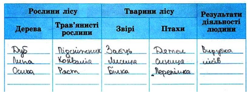 2. Використовуючи ключові слова, склади чотири речення, у яких опиши зв’язок між людиною і природою. Ключові слова: меблі, дерево, мед, бджоли, птахи, папір, годівниці, бавовна, сукня.