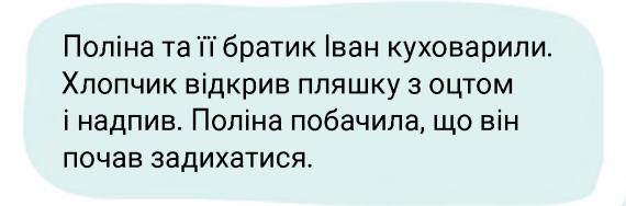 3. Ситуації: Оленці на шкіру попали краплі Борщівника. Вирішення: повідомити дорослих, змити отруту зі шкіри, накласти пов’язку на чисту шкіру.