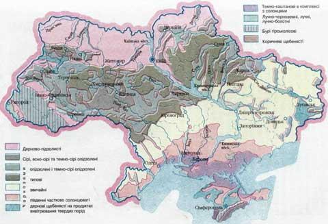 Сірі лісові, чорноземи, чорноземи каштанові, каштанові.