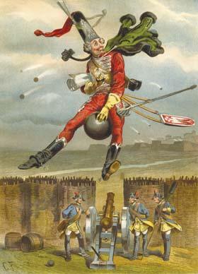 несено з людини, яка, присідаючи, зникає з поля зору, на небесне тіло, що щезає за обрієм. У