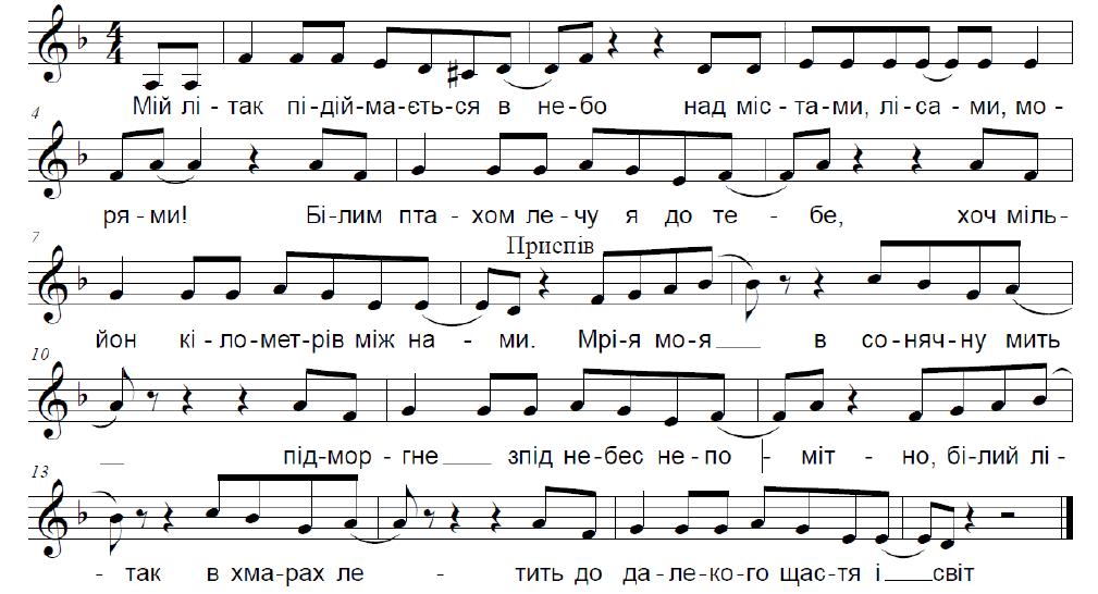 Пісня «Крок до зірок» (музика Б. Мейн, вірші А. Верхова, Л. Ніколенко), додаток, с. 134.