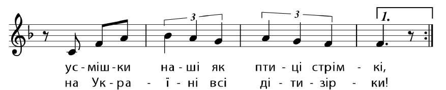 Пригадай запис нот і прочитай текст. Які з нот не використано?