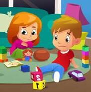 Wyrazy pomocnicze: chustkę, szufelkę, dzbanek, lalek, fartuszek, miska, szczotkę.