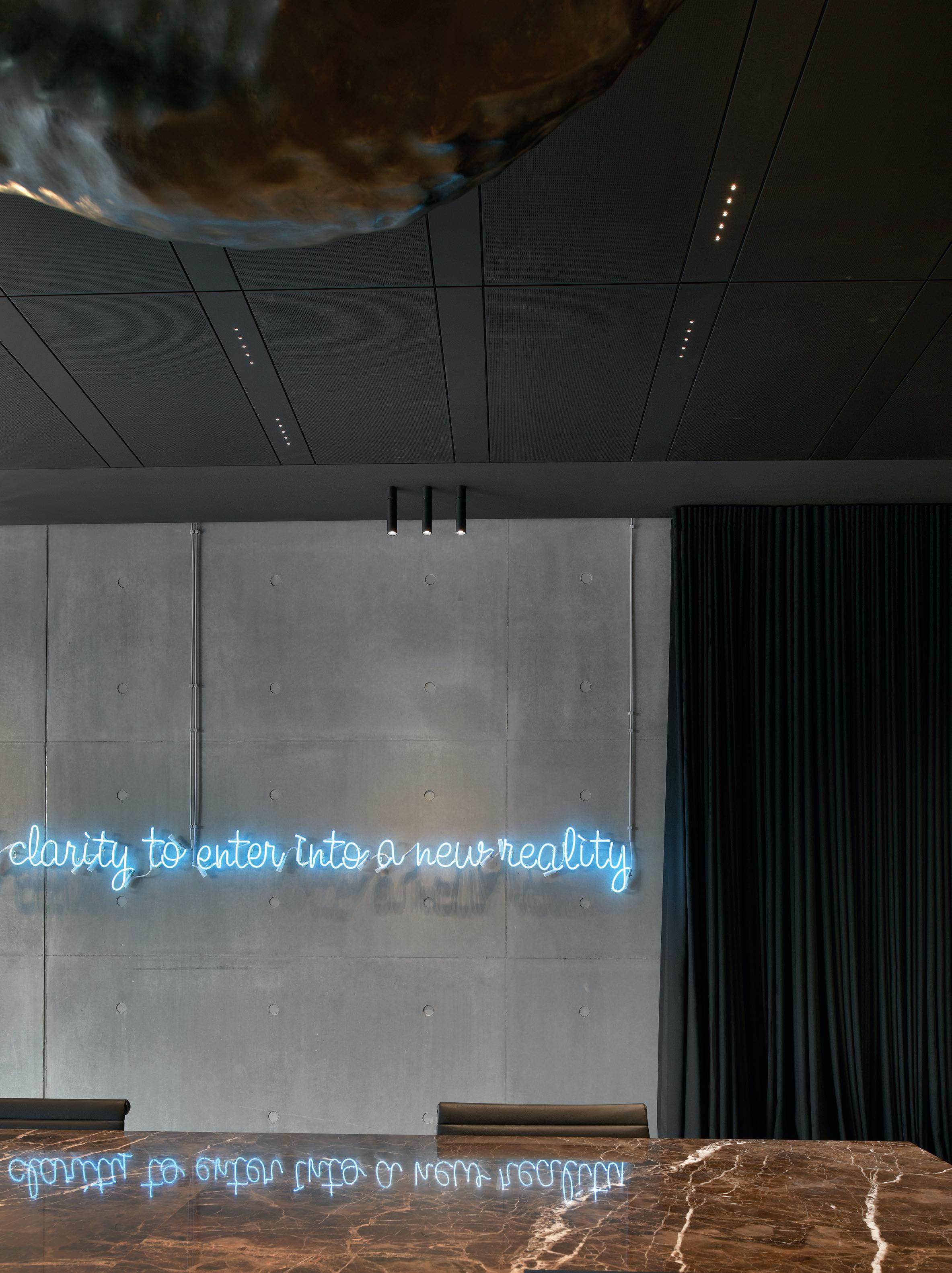 Wall-to-wall ceiling systems stretch over the entire surface of the room.