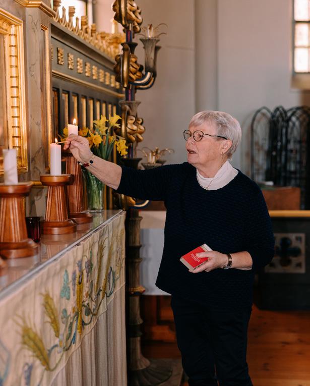 – Det är upp till en själv när man kan och vill. För mig ger det mycket tillbaka att vara engagerad, både uppskattning och samvaro. Jag är en person som gillar att ha saker att göra, säger Görel, som förutom gudstjänstvärd är en av dem som bakar till kyrkkaffet efter söndagsmässan och även rensar ogräs i Oasen, som är Kolbergakyrkans trädgårdsprojekt.